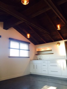 My good client Angela Grubb connected me to her client Cindy Fong some time ago. You may recall my post Estate Skyline where I did some small tasks for Cindy to make her home ready for the market. Cindy was gracious to employee me in her new home in an effort to revitalize her 80+ year old garage and studio. We honored the historical architectural exterior but took contemporary license to the studio’s interior. It is a pleasure working with a client whom has a good eye and values modern aesthetics. The rough timber framing was exposed and some re-sawn fir members added for structural improvement. A polished concrete slab, full kitchen and bath were added to create a comfortable space where one can work or Mom can stay for the weekend. I’m proud of what we created. To request more information on the Fong project click here. Click back to projects.