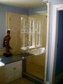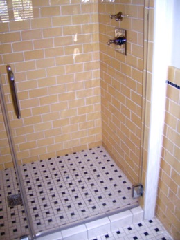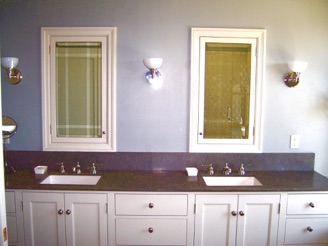 When the Bluhm project permits finally came through, the rains were upon us. The El Nino rains. We must have spent a month battling the weather. We had the biggest tarp I could find: we worked under it; the Bluhms lived under it. They were real troopers all the way until completion. It was a good thing, as the job evolved as we worked. Pam, David and I worked closely through every detail. The house grew in all directions--up, down, and out. We remodeled two bathrooms and added two more. We also created a finished room in the basement, all while preserving the original detailing. They were glad to see me go, but we were all very proud of the finished project. Click back to projects.
